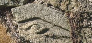 An verschiedenen Stellen der weiteren Kirchenmauer sind unterschiedliche mittelalterliche Relikte, wie ein, in einen Stein gehauenes Auge, ein dreieckiger Türsturz aus einem älteren Sakralbau, sowie verschiedene Steine mit Inschriften (z.B. C1H5) zu sehen.